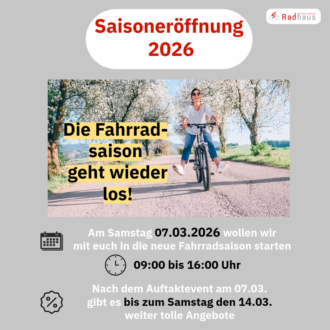 Wir feiern die Eröffnung der Fahrradsaison 2026 mit tollen Angeboten und einem Event für die ganze Familie. Für die Verpflegung ist ebenfalls gesorgt, neben Getränken können Sie direkt vor Ort leckere napolitanische Pizza kaufen.